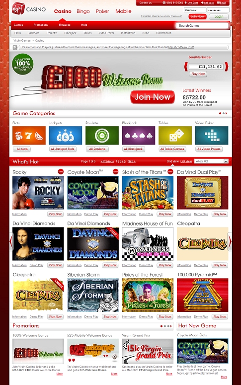 Various Other Games: There Are Also Other Casino Games To Be Played Here. Over A Dousin Different Roulett Games Can Be Found In The Roulette Section. BlackJack, Video Poker, Scratch Cards, Keno And Instant Win Are Also Present. The Instant Win Section Got Some Interresting Games Like Monopoly On a Roll, Deal Or No Deal And Virtual Horses. The Table Games Section Includes Classic Titles Like Baccarat And Caribbean Stud Poker Plus Some Others. Virgin Games Also Contains 2 Other Main Sections Wich Are Virgin Bingo And Virgin Poker. For More Information Information Please Visit Virgin Games Casino To See Everything They Have To Offer Their Players